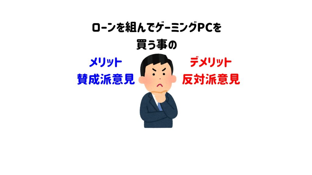 私自身ローンを組む時にものすごく悩みましたし、審査通った時も本当に支払えるかめちゃくちゃ不安になりましたが結果的には返済できていますし、一括支払いでは絶対買えないスペックのゲーミングPCを手に入れることができて結果的には大満足しています。